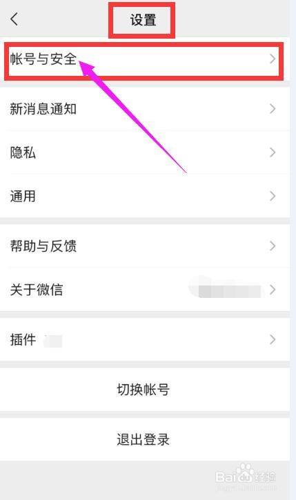 4进入“设置”页面后,在该页面点“账号与安全”。