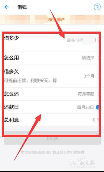 在借钱栏中,会提示你可以借钱的最大额度,在借钱栏中输入自己想要借款的数量和借款用途、时间