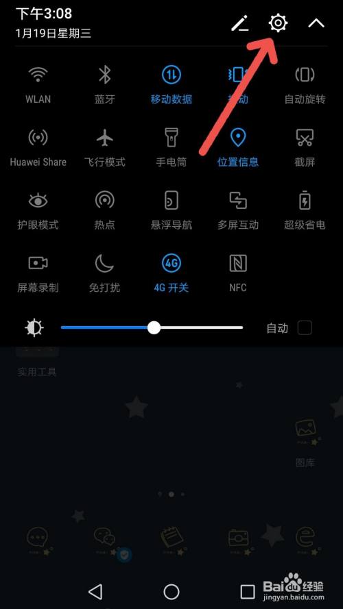 下拉手机通知栏点击设置。