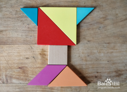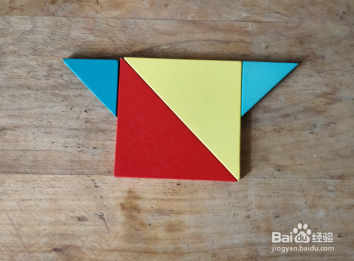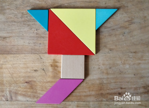 摆上中号三角形,放在平行四边形的右侧挨着,直角向上,如图。比赛奖杯就拼组好了。