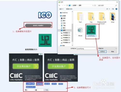 选择想要制作成ico图标的图片进行上传,上传成功后稍等片刻,在网页下方选择相应的尺寸进行下载,最好是32 X 32的,如果小就选择 64 X 64