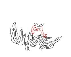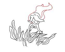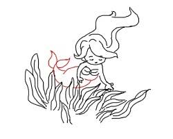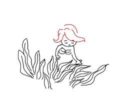 简笔画时间,下面来跟着画水草中的美人鱼吧。