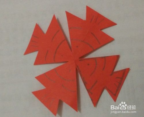 将纸展开,在每一个上面画上小鱼,剪纸就基本完成了。