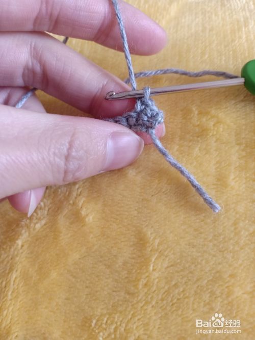 钩好 20 个锁针后,在立一个锁针,然后在第二个锁针背面,凸起的半山是钩短针。