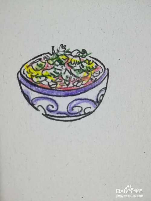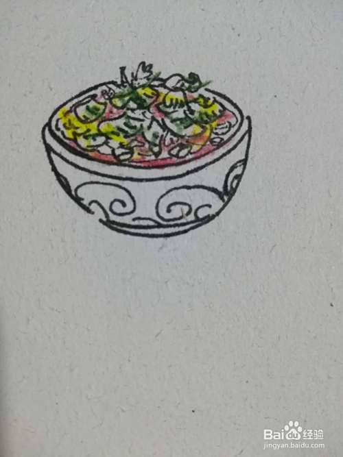 最后把装水煮鱼的碗涂上颜色