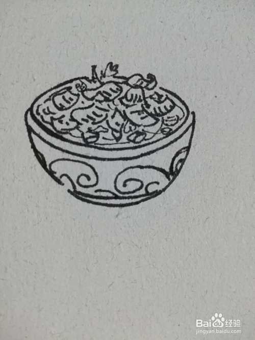 第三步画出装水煮鱼的碗身