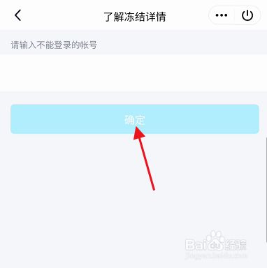 进入了解解冻详情,输入不能登录的帐号点击确定进入按照步骤申请解冻