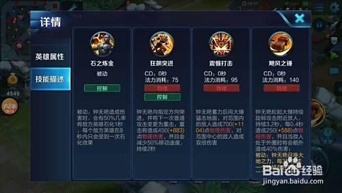 一技能:向前突进一步,然后强化下一次普攻。这是钟无艳的一个位移技能。这个位移可以用来追击,也可以用来利用墙身逃跑。建议去训练模式用一技能的位移试试哪些墙可以穿,哪些不可以。因为钟无艳的这段位移还是比较短的,有一些太厚的墙是过不去的。