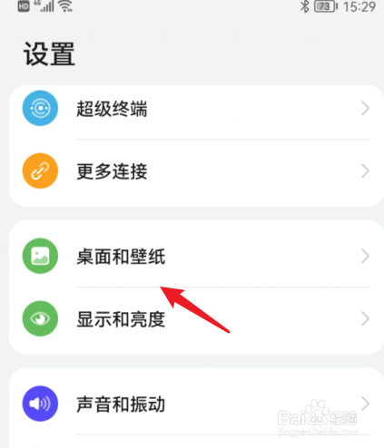 选择手机的桌面和壁纸选项。