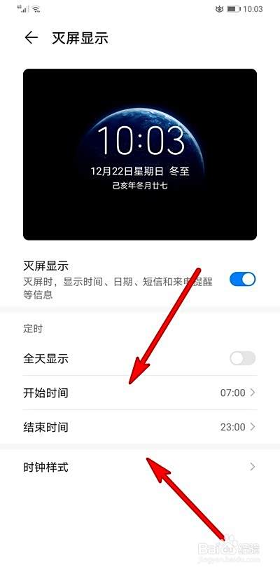 可以根据需要设置灭屏显示的时间段。