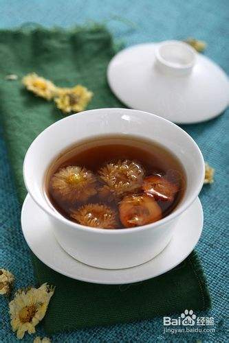 做法:将干菊花和山楂片用清水冲洗干净。锅中倒入水,放入干菊花和山楂片,煮开后继续用小火煮10分钟,关火后放入普洱茶,将茶泡散后,稍稍冷却后调入蜂蜜搅拌均匀即可。