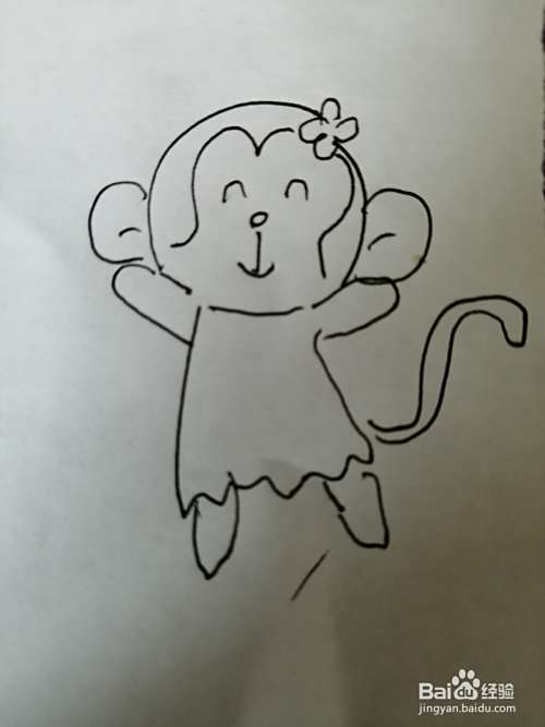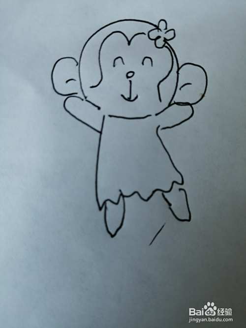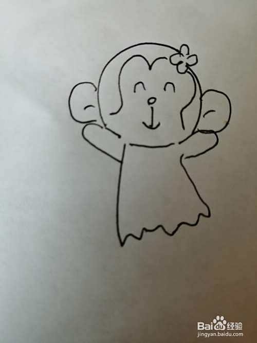 第五步,然后我们继续画出漂亮的小猴子的两只小手和漂亮的小裙子。