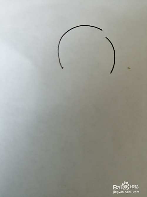 第一步,我们先画出漂亮的小猴子的头顶部分,一个向下弯曲的弧线。