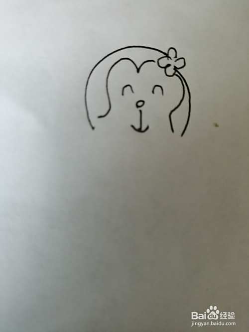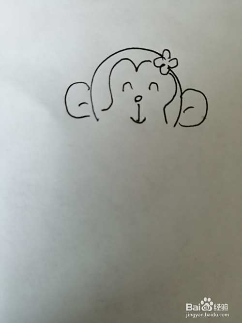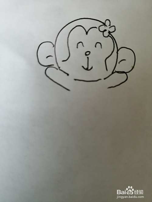 第二步,然后在漂亮的小猴子的头顶画出一朵漂亮的小花。
