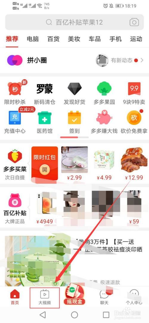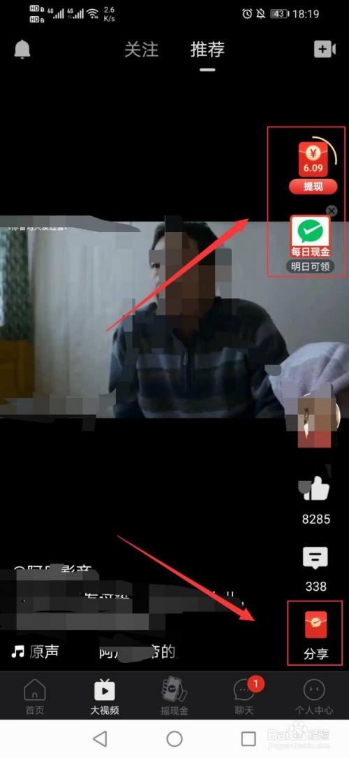 在大视频中只要刷视频就可获得金币,还可以通过下面的分享获得红包,也可以通过右上方的每日任务来获得金币。