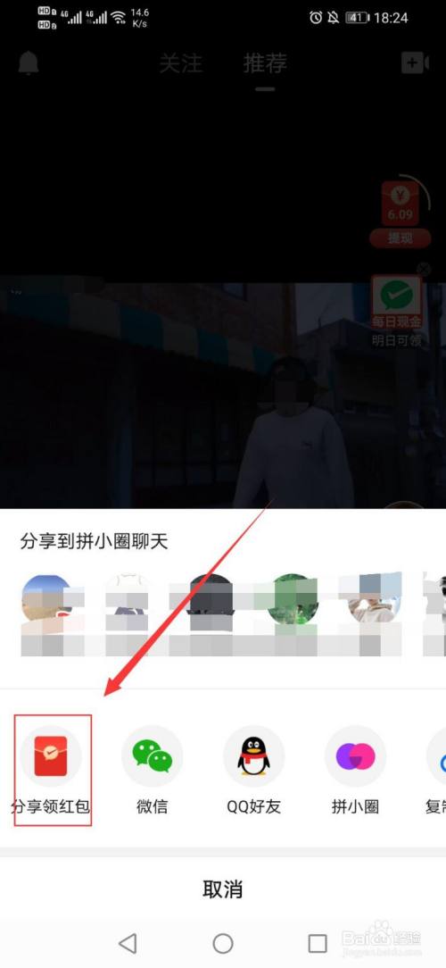 分享红包获得金币时,点击左下方的“分享领金币”。