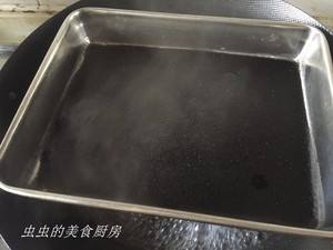 黑芝麻层成型后,倒入同等份量的椰浆层,大火蒸6分钟(现在才发现我家这个蒸盘底部不平......)