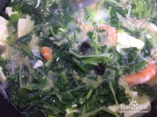 待小白菜稍软时放入对虾。