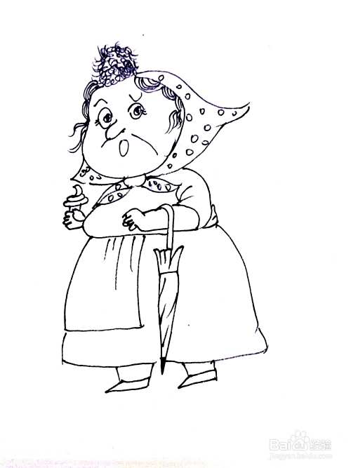 拿着雨伞的老奶奶线描画怎么画呢?一起来看看吧!