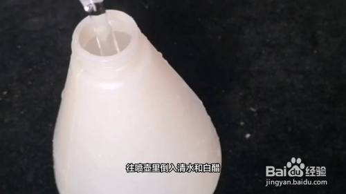 往喷壶里倒入清水和白醋,将两者摇晃均匀。