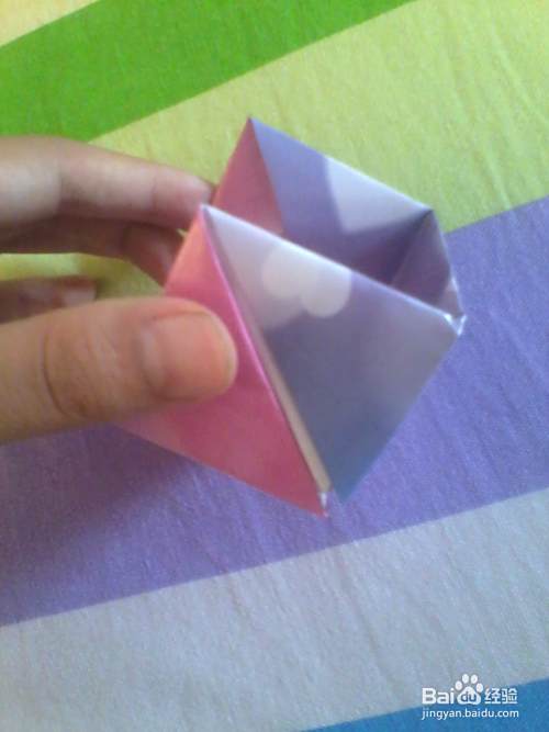 从中间的洞展开,就成了这个样子,然后按同样的方法再折一个