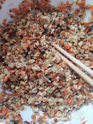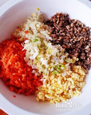 白菜切丁用开水烫一下,捞出攥干水分。开始用温水和面,醒面20分钟左右。