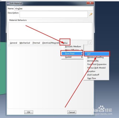 点击界面左侧的【material edit】图标,如图所示,并在弹出的面板上选择【other】-【pore fluid】-【gel】,这就是我们需要定义的