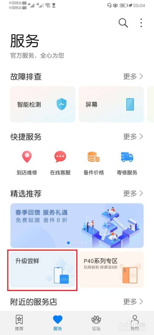 在服务页面,选择打开【尝鲜升级】,如下图所示。
