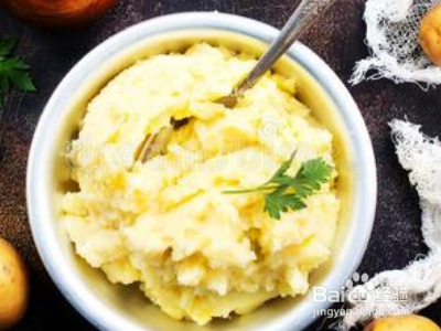 1.把土豆洗干净切成片放进干净的碗里,把土豆压成土豆泥,放进冰箱里,冷冻差不多15分钟左右,取出来。