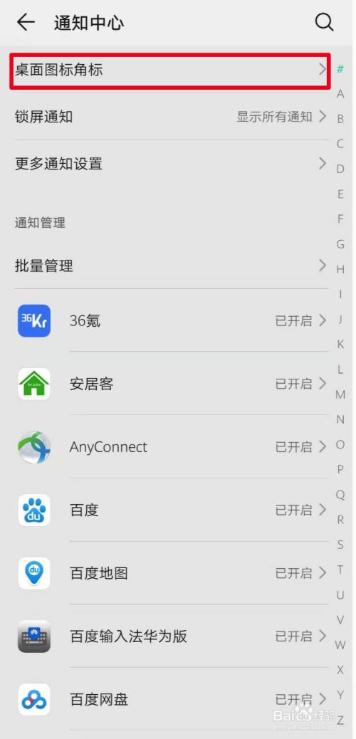 状态开启表示桌面消息通知会显示数字角标的应用。可以关闭状态开关关闭显示。这时桌面上面就会隐藏展示数字角标了。