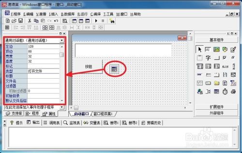 在基本组件栏里拖拽编辑框、按钮和通用对话框到程序中。