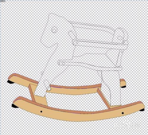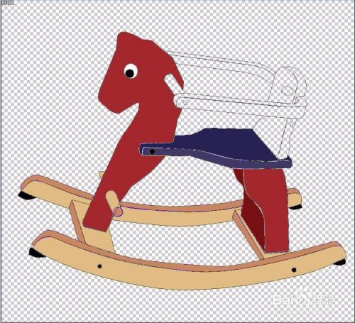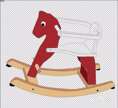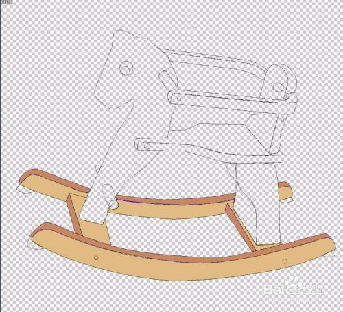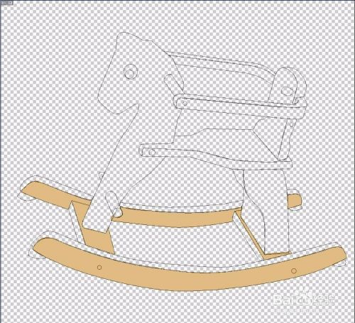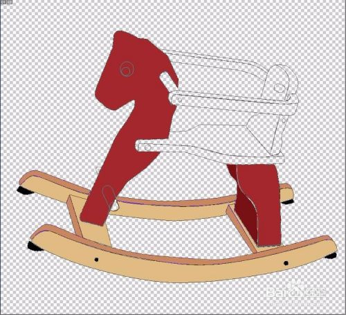 选择钢笔工具,我们把木马的外形轮廓全部绘制出来,立体结构要用不同的颜色来呈现,而对于细节之处的色调变化也要一一用路径描绘到位。