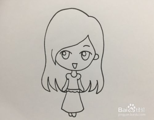 接着将两只胳膊画出来后,画出下半身的裙子与双脚。