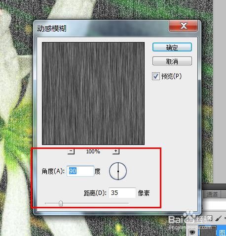 选择图层1执行滤镜--模糊--动感模糊命令,设置数据如下;再锐化2次