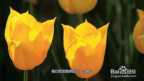 在郁金香开完花后,我们可以在开的花朵下3厘米处用剪刀剪断花朵。