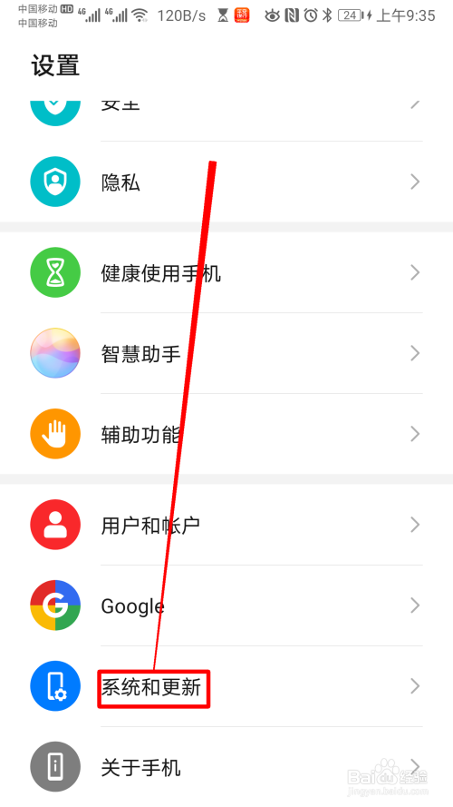 在 左下 方向,寻找 系统和更新 。