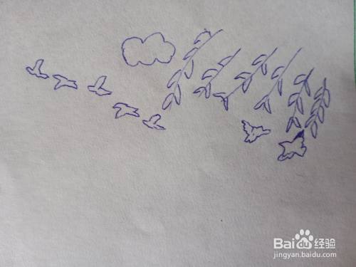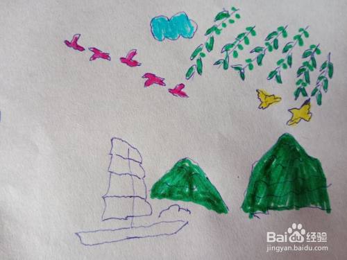 把树叶涂绿色,白云涂蓝色,黄鹂涂黄色。