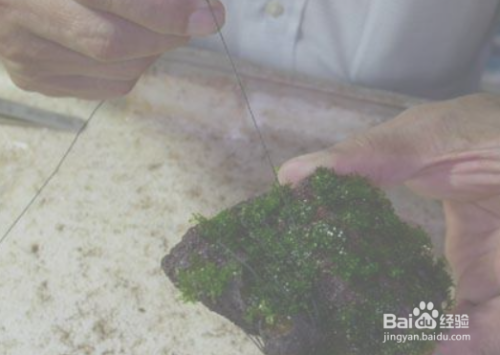 珊瑚莫斯相对于其他的莫斯来说比较的容易碎,如果使用的是火山石,表面特别的凹凸不平。因此,选用尼龙线,而不是更加坚硬的鱼线来处理。