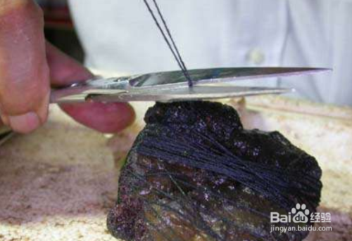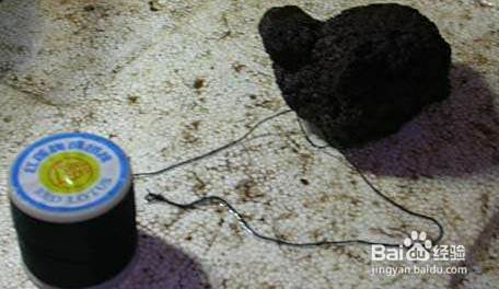 准备好尼龙线与火山石。先用尼龙线在火山石上绑一圈,打一个结,结后的线,稍微长一些,等最后收尾的时候有用处。