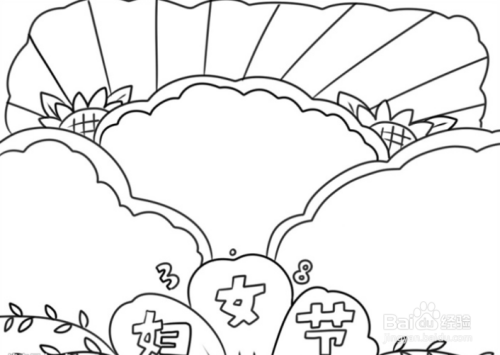 最后在三个边框中画上横线,简单的妇女节手抄报就完成了。