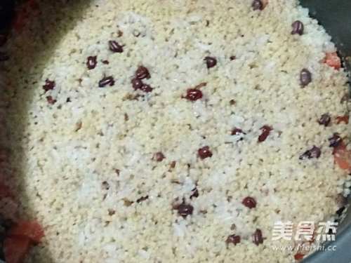 红豆提前浸泡,我是早晨做饭,前一天晚上就泡上了。