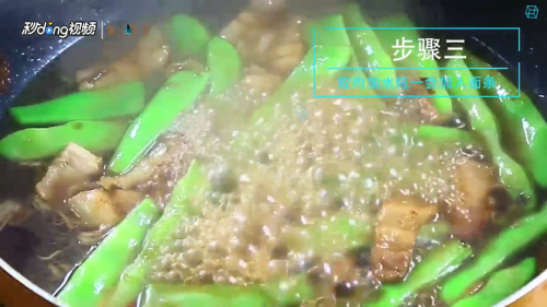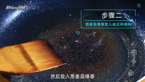 葱姜蒜爆香放入扁豆和调料。