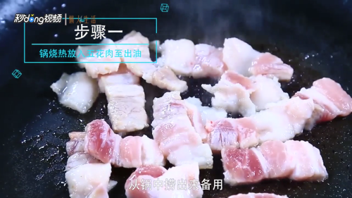 煎五花肉至出油。