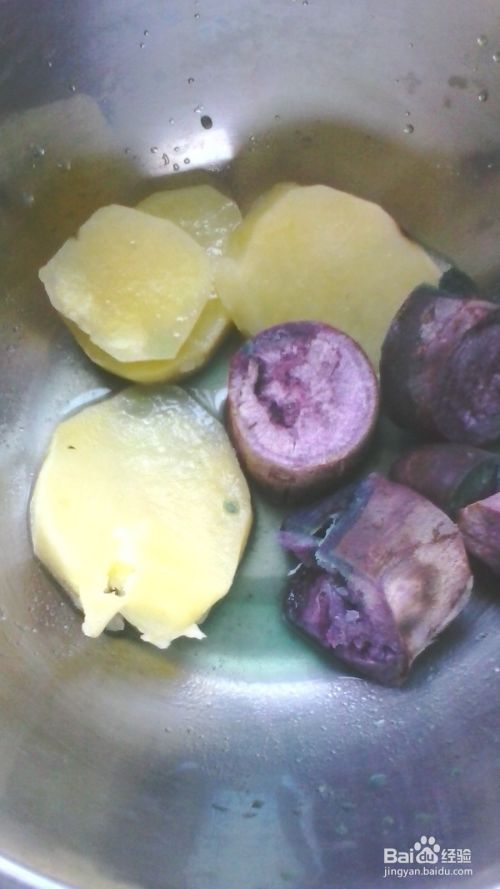 准备食材 如图 这是我已经蒸熟好了的 土豆和紫薯