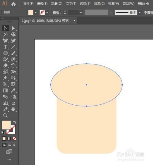 2、画个椭圆,放到矩形上,也填充一样的颜色,将二者用路径查找器合并。