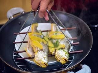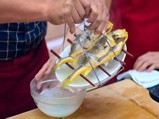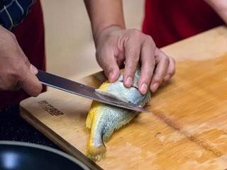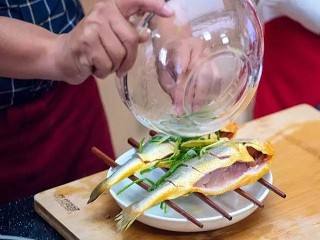 取出黄鱼,倒出汤汁,取走生姜和香葱。