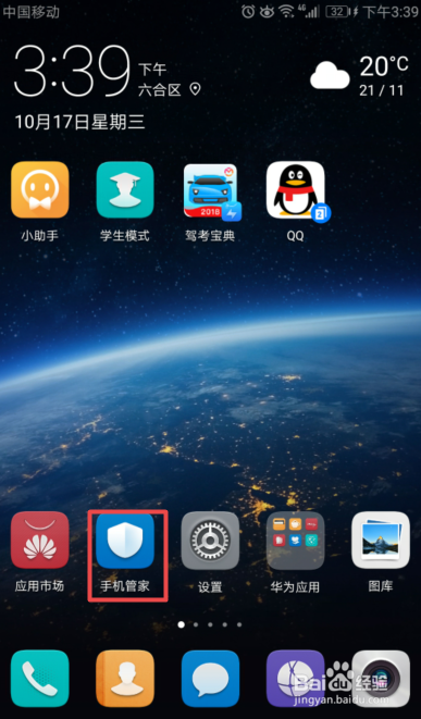 我们先打开手机,然后我们在手机桌面上找一下手机管理,我们点击手机管理;