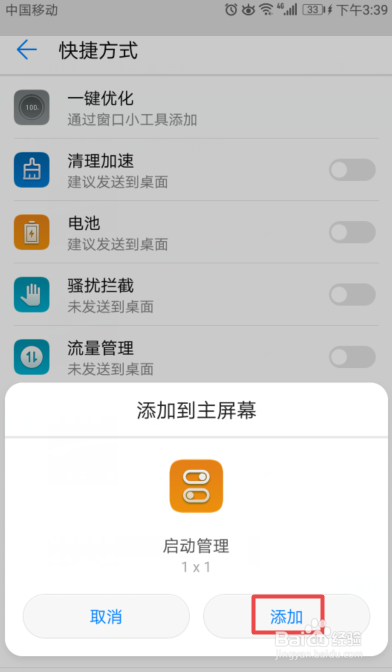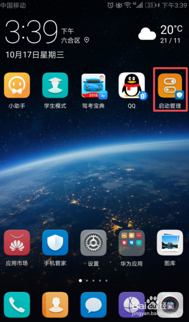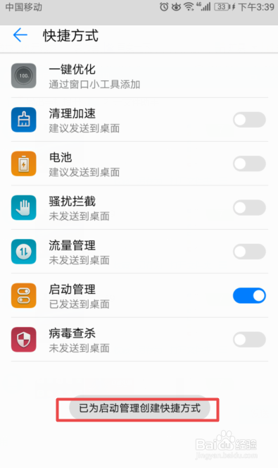 最后,我们返回到手机桌面上,我们可以看到此时手机桌面上便多了一个启动管理了。