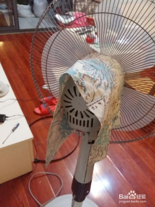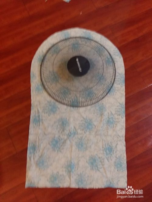 把风扇面罩拆下来,把布料双层剪下图的样子,记得布料要比面罩大4厘米的样子,因为风扇是有厚度的。