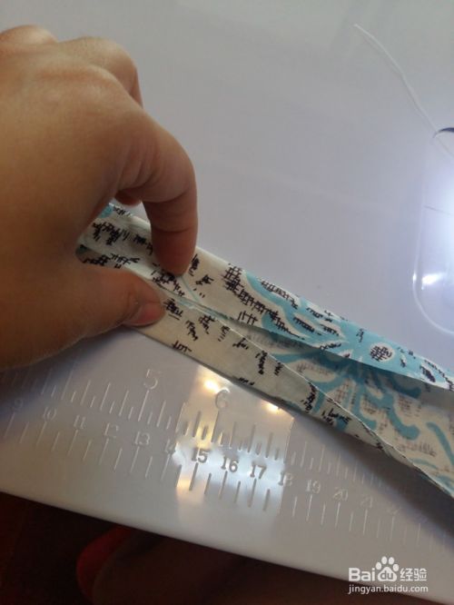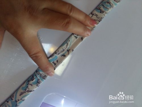 剪一块长方型的布条,这个长度就是可以捆住风扇柱子的长度。布条的两头缝上粘贴。做好缝到蝴蝶结上